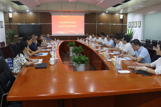 張斌董事長首先歡迎INDITEX集團一行人的到來,介紹了杜鐘氨綸公司發(fā)展史及在可持續(xù)新產(chǎn)品開發(fā)應(yīng)用前景發(fā)展方面戰(zhàn)略規(guī)劃的基本情況;INDITEX集團及旗下品牌ZARA也向我們展示了其產(chǎn)品創(chuàng)新和在可循環(huán)發(fā)展的經(jīng)營思路,對公司再生GRS產(chǎn)品、生物基、消費后氨綸再生產(chǎn)品的發(fā)展產(chǎn)生濃厚興趣,對公司在可持續(xù)再生產(chǎn)品的研發(fā)能力表達認可及合作意向。