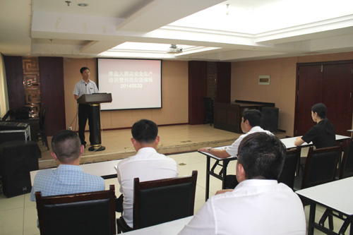 安全宣教一著不讓。該酒店組織全體員工觀看安全事故教育警示片,宣傳安全生產(chǎn)知識,提高員工安全生產(chǎn)意識,營造“安全生產(chǎn)月”濃厚氛圍。活動(dòng)期間,共召開安全會議2次,下發(fā)文件2份,集中安全培訓(xùn)2次,開展消防應(yīng)急演練1次。