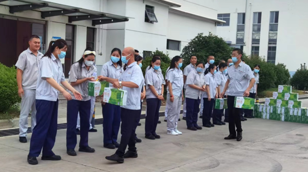 7月19日下午,公司黨支部書記、總經(jīng)理韓立新代表公司開展夏季送清涼活動(dòng),為全體職工送上組織的關(guān)懷和貼心準(zhǔn)備的牛奶等防暑降溫慰問品,給炎熱的夏季帶來一縷清風(fēng),進(jìn)一步激發(fā)了職工的工作熱情。(神特宣)