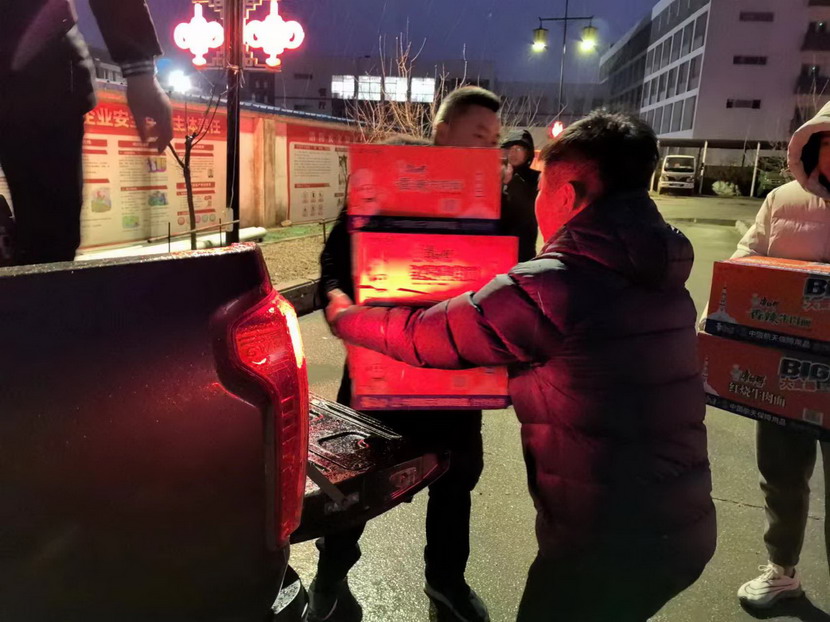 夜間,工會主席傅健一行現(xiàn)場看望慰問清除冰雪戶外工作人員,為他們送上方便面等慰問物資,并囑咐他們在辛勤工作的同時做好防寒保暖、安全防護(hù)。為在冰天雪地中堅持工作的一線工人送去了溫暖和關(guān)懷。