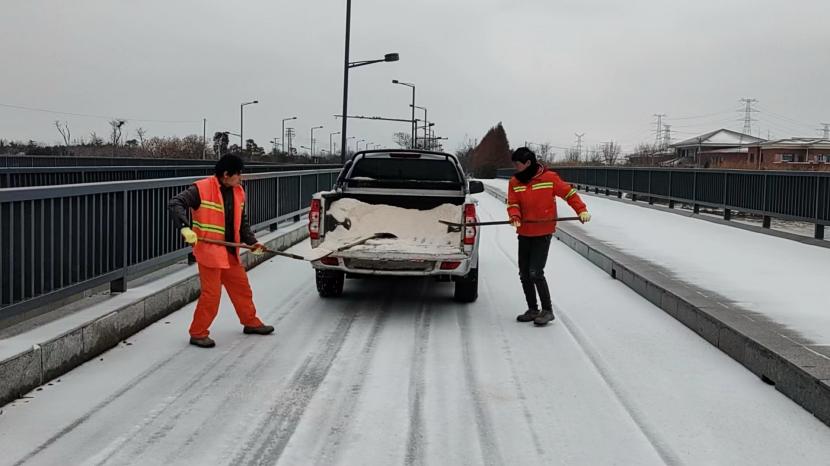 ? ? 220日傍晚,我市普降大雪,造成轄區(qū)交通通行受阻,給群眾出行帶來諸多不便和安全隱患,盛達(dá)市政分公司的養(yǎng)路人全力打好清雪除冰攻堅戰(zhàn),24小時輪班作業(yè),堅守在清雪除冰一線,保障群眾平安出行。他們呼出的哈氣把口罩上、圍脖上、睫毛上、眉毛上、帽子上都掛滿了冰霜,他們在風(fēng)雪中前行的腳步,撥動了我們的心弦,讓我們看到了平凡養(yǎng)路人身上不平凡的精神,他們挑起的不僅是轄區(qū)道路暢通的重?fù)?dān),也是人民群眾對美好生活的重?fù)?dān)。通過他們的輪番奮戰(zhàn),橋通了,路也暢了,路上的行人紛紛點贊。