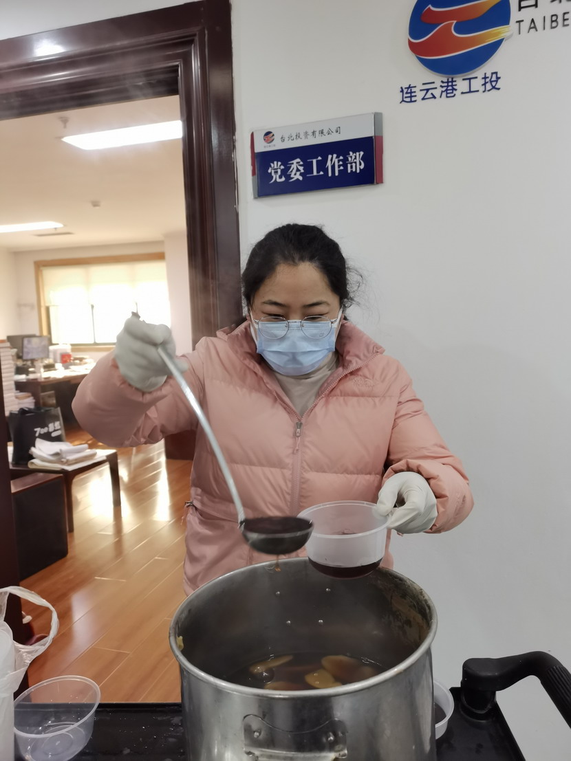 經(jīng)科學(xué)配制,組織專(zhuān)人每天用生姜、紅糖、蔥根、甘草等原料熬制姜茶提供給員工飲用。職工們喝著香噴噴的姜茶,個(gè)個(gè)臉上流露出幸福的笑容,邊喝邊說(shuō):這個(gè)湯劑既暖身又暖心!