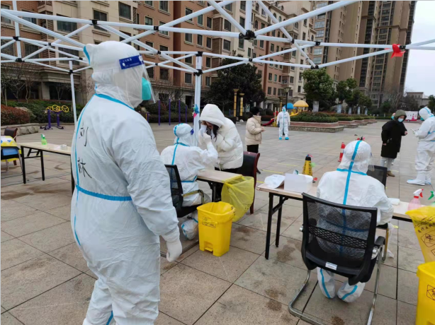 315,公司緊急發(fā)通知,需要一名志愿者進駐同科志愿服務。與以往志愿服務性質(zhì)不同的是,這次要24小時駐扎在同科,晚上也只能睡臨時搭建的帳篷。劉林,作為公司年齡最小的員工,卻在第一時間自告奮勇的報名。志愿服務的第一天,劉林先學習穿脫防護服、鞋套,然后協(xié)助工作人員采集信息、檢查健康碼、維持現(xiàn)場秩序、解答居民的各種問題。這樣的工作,從早晨一直持續(xù)到晚上。簡單吃完晚飯,緊接著是補錄綠碼人員。等所有工作結(jié)束,再進行周圍環(huán)境的全面消殺工作。防護服一穿就是一整天,每每脫下時,已是皮膚發(fā)皺、衣服濕透,面屏里泛滿水珠……已經(jīng)連續(xù)工作2天的劉林說,“累,但我們必勝,堅持就是勝利!”