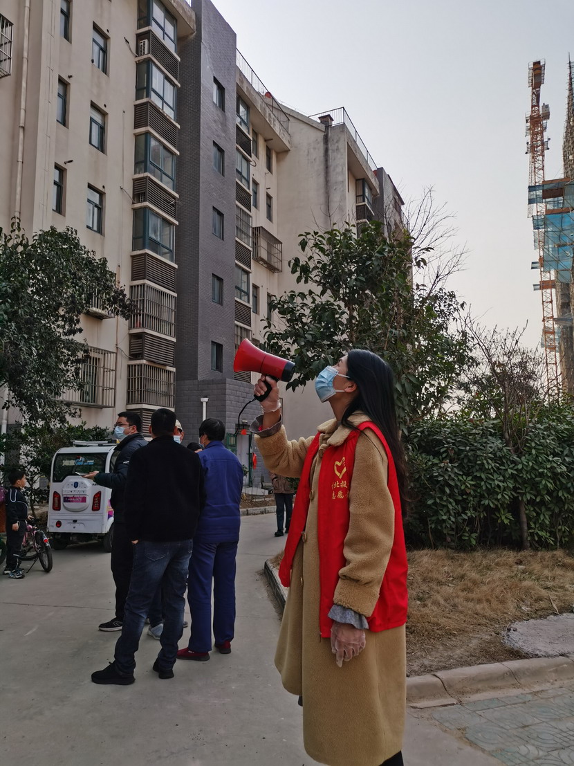 ▲昌圩社區(qū)臨時(shí)黨支部副書(shū)記蘇玲宣傳核酸檢測(cè)政策