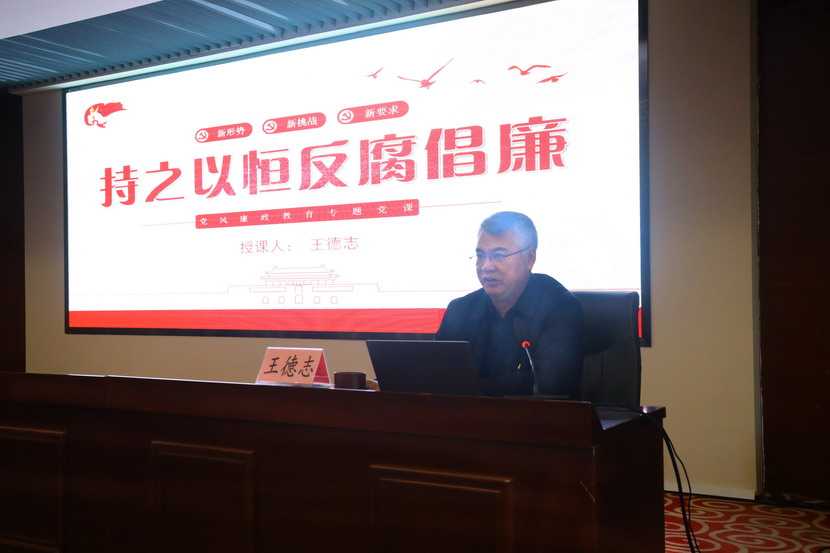 隨后,公司黨委書記、董事長、總經理王德志給大家作題為“持之以恒反腐倡廉”的廉政黨課,從當前階段反腐倡廉新形勢、經濟發(fā)展與廉政建設關系、企業(yè)反腐工作面臨新挑戰(zhàn)、全面落實從嚴治黨總要求四個方面闡述要加強反腐倡廉工作,促進黨風廉政建設。