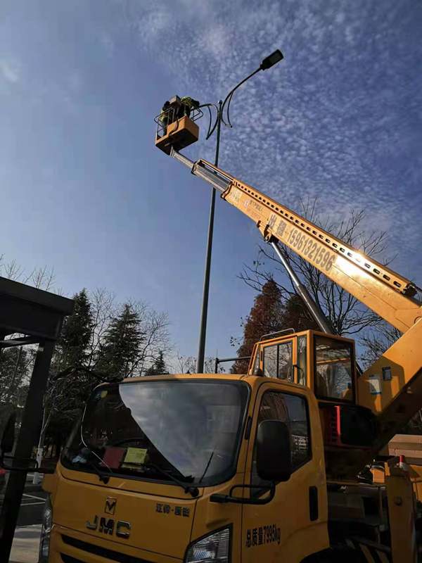 ?早已習慣了風餐露宿的翔立人,中午一碗面條、或是一碗蓋澆飯草草了事,飯后不休息,直接爬上高空作業(yè)車繼續(xù)工作,運輸隊圍繞著幾臺高空作業(yè)車也是忙個不亦樂乎,“加浦,像這樣將舊路燈立起來,先貼著車廂圍一圈,這樣可以多裝點”,既要負責將舊路燈收集送到甲方倉庫,又要領出來供給幾個隊的物料供應,同樣是忙的馬不停蹄。大家你追我趕,相互暗暗競爭者,賽安全,比質量,趕進度。晚上收工后,翔立辦公群里各隊報工作量“一隊今天完成了18根桿”,“二隊今天干得最多了,他們完成20根桿,換了40個燈頭,不簡單啊”,“你也不錯嗎,一個人完成了16根桿,還想咋的”,“今天俺們隊的工具不得手,明天我們隊一定要超過你們”,群里大家相互鼓勵著!