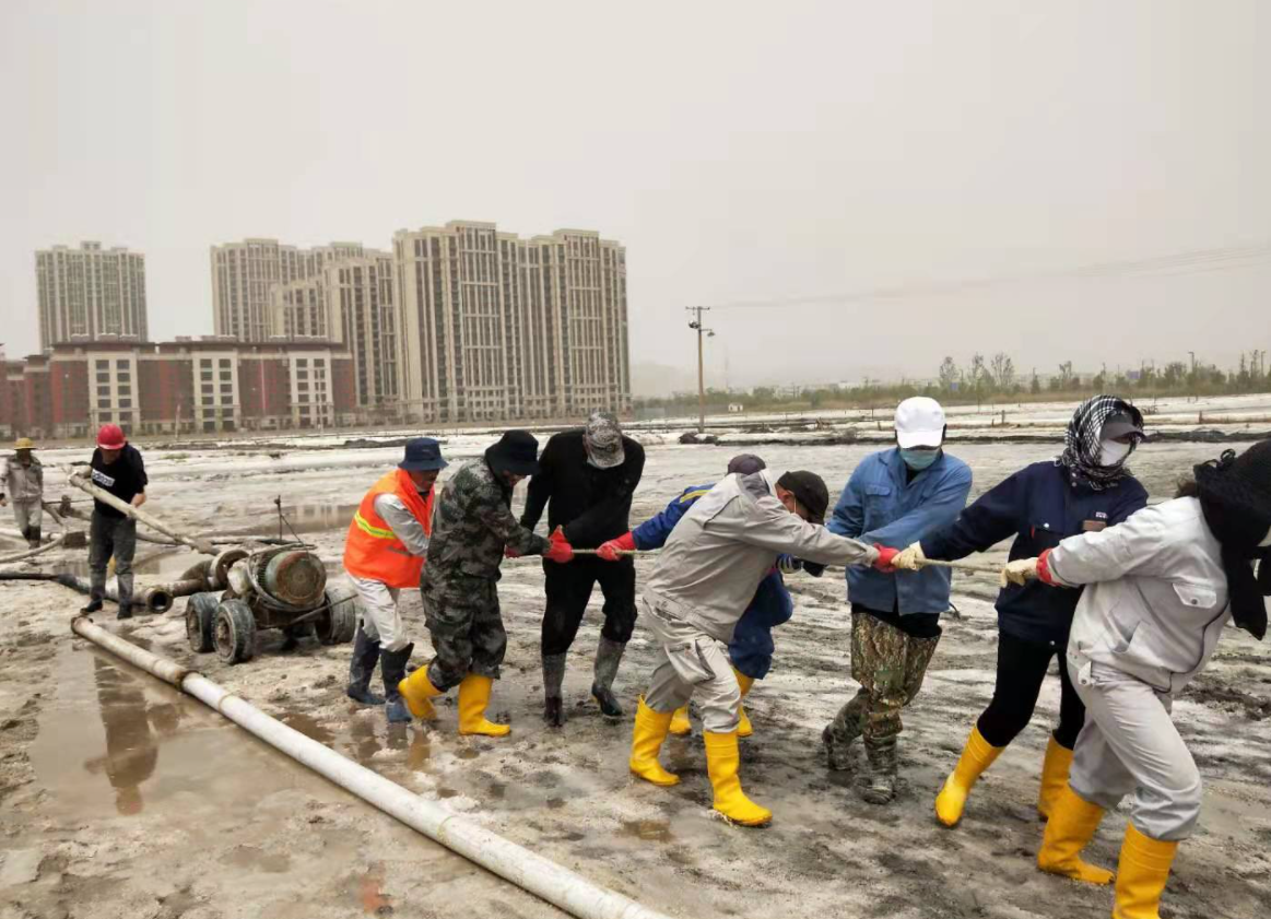 “百日會戰(zhàn)”完美收官,大家以黨史學(xué)習(xí)教育為精神動(dòng)力,弘揚(yáng)“四再”創(chuàng)業(yè)精神,淬煉“四拼”工作作風(fēng),展現(xiàn)出強(qiáng)有力的政治責(zé)任感和歷史使命感,在廣袤的鹽田上,用勤勞的汗水譜寫“四個(gè)最”的美麗華章。開局最早,搶抓春景好時(shí)光,開創(chuàng)歷史最早記錄,“破天荒”地從大年初十開啟扒鹽。戰(zhàn)線最長,以西灘機(jī)械扒鹽為起點(diǎn),歷經(jīng)東灘、大八組、海濱人工扒鹽,二組、西灘雙線齊上、火力全開,至東灘機(jī)械扒鹽落下帷幕,實(shí)現(xiàn)了“漫漫長征路”的圓滿勝利。歷時(shí)最久,整整百日一舉打破扒鹽歷時(shí)最久記錄,從冷冽刺骨的寒風(fēng),到烈日當(dāng)空的火熱,從臃腫的棉襖,到清涼的短袖。困難最多,面對天時(shí)不利的氣象條件,面對著堿廠關(guān)停的嚴(yán)峻局勢,面對著環(huán)保安全的巨大壓力,面對著人手不足的現(xiàn)實(shí)問題,團(tuán)結(jié)一心,攻堅(jiān)克難,迎接挑戰(zhàn),眾志成城筑鹽山,“暑霜春雪”顆粒盡歸倉。