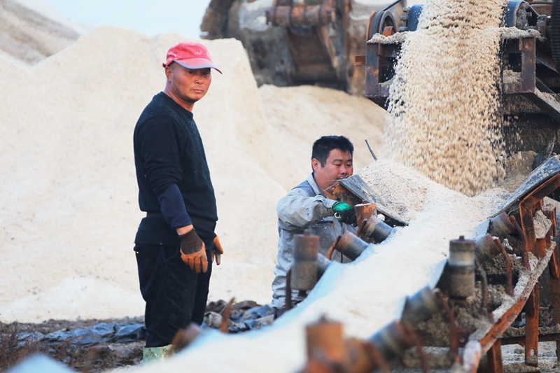 保證過河原鹽集運(yùn)。皮帶機(jī)如果缺乏合理的檢查和維護(hù)工作,容易引發(fā)斷帶、打滑、跑偏、撒鹽等現(xiàn)象。工程隊(duì)成員24小時待命,按照領(lǐng)導(dǎo)要求,積極參與海州灣公司扒鹽工作,皮帶機(jī)的維修保養(yǎng)以及搬運(yùn)工作,為扒鹽、運(yùn)鹽、銷售等工作保駕護(hù)航。