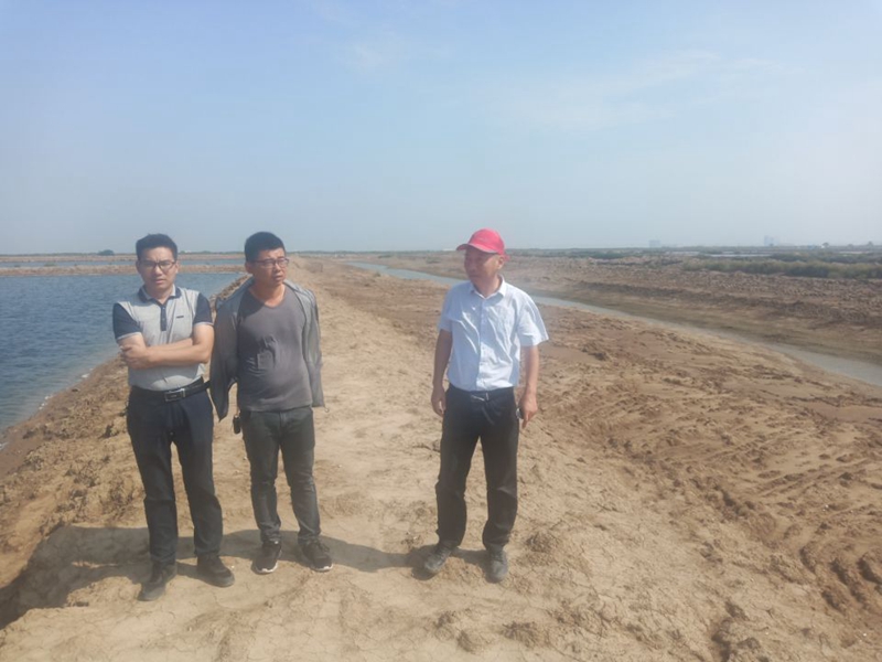 養(yǎng)殖池邊,工作人員仔細(xì)的對河道清淤進(jìn)行現(xiàn)場勘查,確保排水通暢。