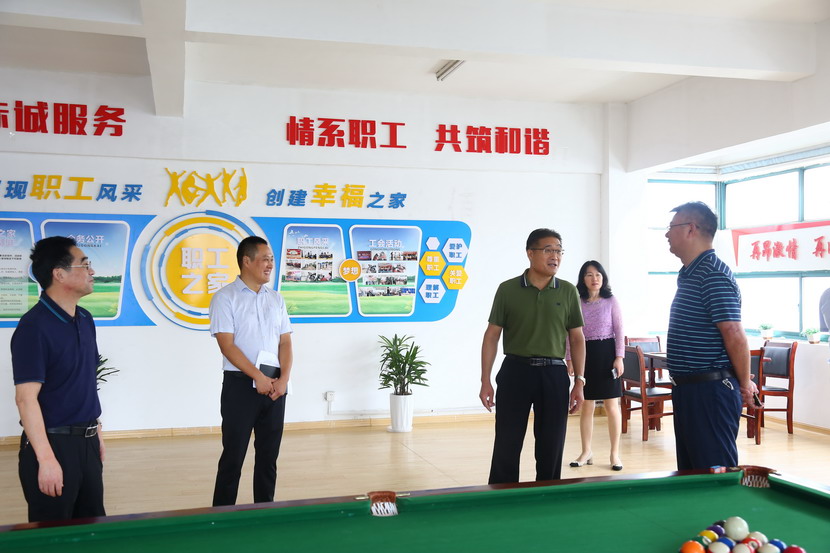 92日集團公司工會來臺北公司開展工會工作專題調(diào)研。集團領(lǐng)導(dǎo)劉承志帶隊,調(diào)研組一行首先來到臨達(dá)公司,參觀職工建家工作開展情況。劉主席對職工文體活動、文體設(shè)施、困難幫扶等一一詢問,并對今后發(fā)展作出指導(dǎo)。
