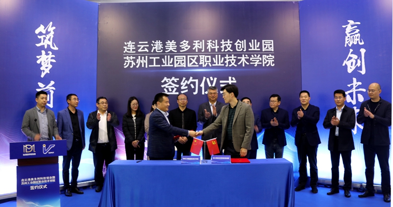 5月11日,投資公司美多利科創(chuàng)園與蘇州工業(yè)園區(qū)職業(yè)技術(shù)學(xué)校“產(chǎn)教融合”項(xiàng)目簽約儀式在“??汀北妱?chuàng)空間隆重舉辦。開發(fā)區(qū)教育工委委員、社會(huì)事業(yè)局教育處處長劉益國等領(lǐng)導(dǎo),蘇州工業(yè)園區(qū)職業(yè)技術(shù)學(xué)院繼續(xù)教育學(xué)院院長魏剛等校方代表,投資公司全體領(lǐng)導(dǎo)班子,美多利公司全體領(lǐng)導(dǎo)班子參加了簽約儀式。