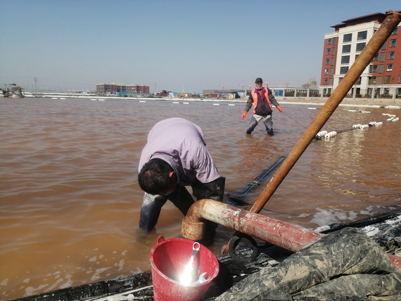 “管頭螺絲擰緊沒有?觸電保安器試跳過了嗎?先開機(jī)試一試管道漏不漏”。在扒鹽現(xiàn)場,扒鹽人員對開機(jī)前準(zhǔn)備工作再一次檢查確認(rèn)。隨著陣陣鞭炮聲的響起,海州灣公司“春扒”正式開啟。