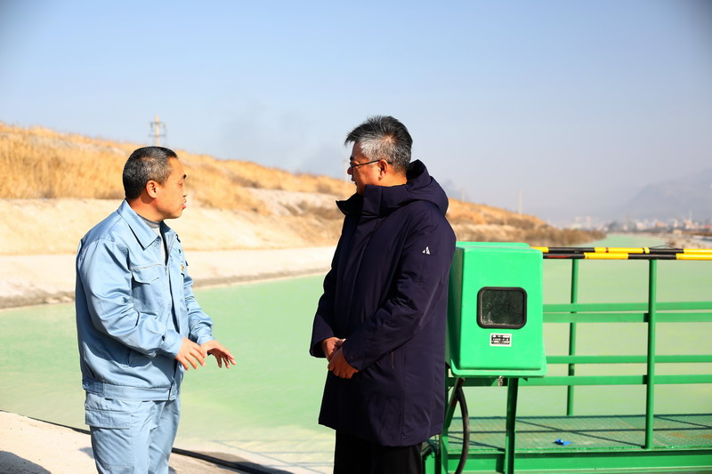 針對(duì)鈣液原料水環(huán)保參數(shù)超標(biāo)等問(wèn)題,董事長(zhǎng)王德志一行現(xiàn)場(chǎng)勘察堿業(yè)公司氨堿上清液,堿業(yè)公司渣場(chǎng)管理處主任盧全才等領(lǐng)導(dǎo)詳細(xì)介紹近期堿廠的環(huán)保整改措施,首先是進(jìn)一步做好酸堿平衡,確保原料水PH值堿度指標(biāo)不超標(biāo),其次是降低氨氮濃度,確保不超標(biāo)。在此基礎(chǔ)上,堿業(yè)公司在氨堿上清液送水通道安裝水質(zhì)在線監(jiān)測(cè)設(shè)備,確保及時(shí)發(fā)現(xiàn)異常,做到第一時(shí)間處置。
