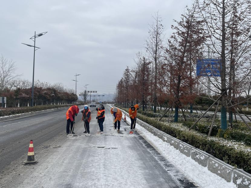 全市普降暴雪,導(dǎo)致區(qū)域內(nèi)積雪結(jié)冰,給道路交通、市民生活帶來了不便,也造成一定的安全隱患。裕升、裕祥養(yǎng)護分公司為令,快速集結(jié)“老中青”組合突擊隊,開展清冰除雪活動,及時清掃出一條安全路。