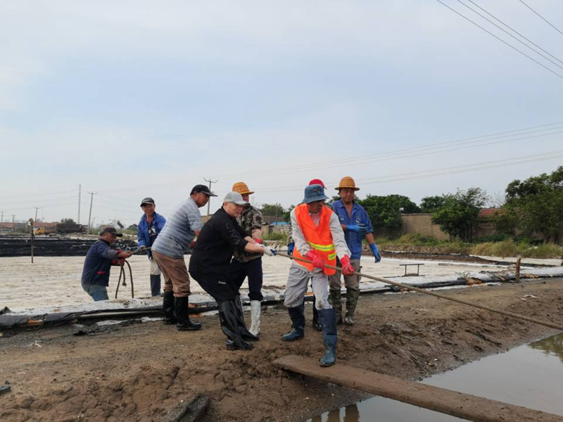 秋鹽開扒以來,海州灣公司上下所有干群,主動放棄節(jié)假日,晝夜奮戰(zhàn)在鹽池里。人工扒鹽三班倒,做到人停機不停;跟班人員24小時無縫銜接,確保時刻在扒鹽現(xiàn)場做好安全監(jiān)管工作。目前,隨著堿廠關(guān)停的步伐加快,原鹽搶收工作進入到了決戰(zhàn)階段,在公司黨委的大力支持下,兄弟單位及機關(guān)各職能部門的火速馳援下,海州灣公司迅速啟動第二臺機械扒鹽管道,與人工扒鹽同步進行。公司領(lǐng)導與廣大職工想在一起、干在一起,上下齊心、爭分奪秒,擼起袖子、甩開膀子,在鹽池間盡情地揮灑著汗水,確保勞動成果顆粒歸倉,誓奪原鹽收官戰(zhàn)的勝利。