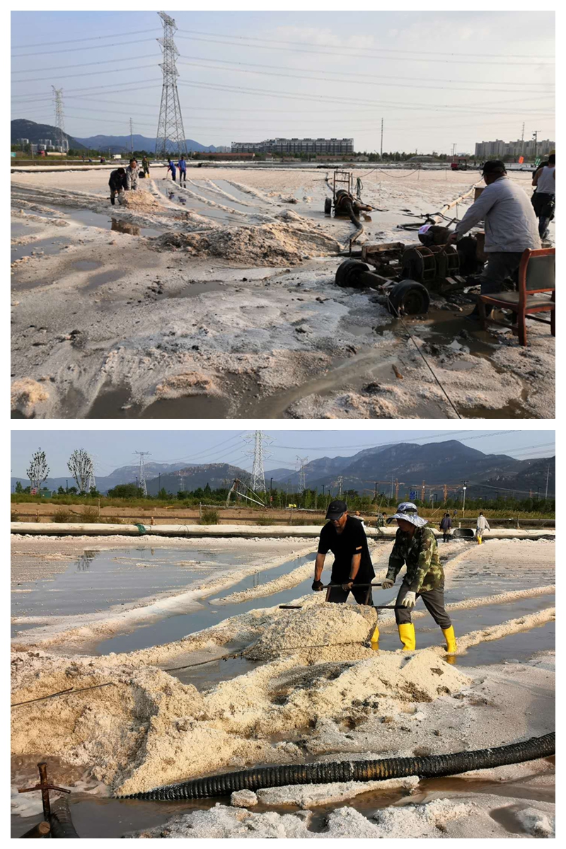 “大架在向后移動4到5公分,鹽鎊、鹵鎊與管頭螺絲擰緊沒有?觸電保安器試跳一下”…….扒鹽現(xiàn)場忙碌而有序,扒鹽人員對開機前準備工作再一次檢查確認。15:56分鞭炮齊鳴、禮花滿天,“秋扒”正式開啟。本次扒鹽采用人工與機械相結合的工作方法,根據(jù)鹽層的厚薄程度決定扒鹽的方式。此次扒鹽生產周期長、工作量大,工區(qū)認真組織、精心安排,制定了詳細、”人性化”的管理人員跟班督查值班表(男同志夜班女同志白班)。要求跟班人員,務必將“安全、質量”兩大主題貫穿整個秋扒工作的各環(huán)節(jié),每天深入扒鹽點開展全面綜合性的定點檢查,重點圍繞“工藝執(zhí)行、安全防范、護具穿戴”等,職工容易產生思想麻痹的細節(jié)工作,嚴明紀律,杜絕違章作業(yè)。搶時間爭速度,確保“秋扒”高效有序完成。