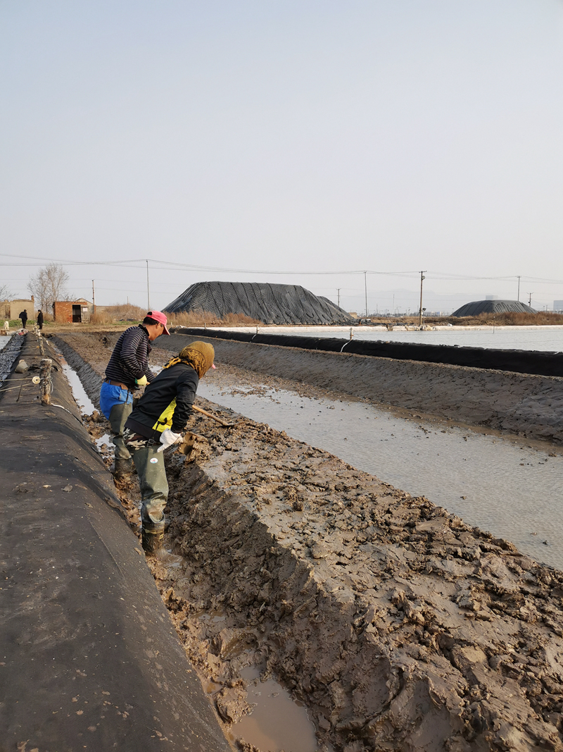 “駕駛挖掘機的是我女婿,這塊地以前是征地廢棄的,現(xiàn)在打好堰就能用起來?!毙律先蔚念I灘手徐傳禮指著正在土方作業(yè)的挖掘機,算起了賬,“今年多產50噸鹽沒問題,自掏腰包改造還是劃算的?!?/span>