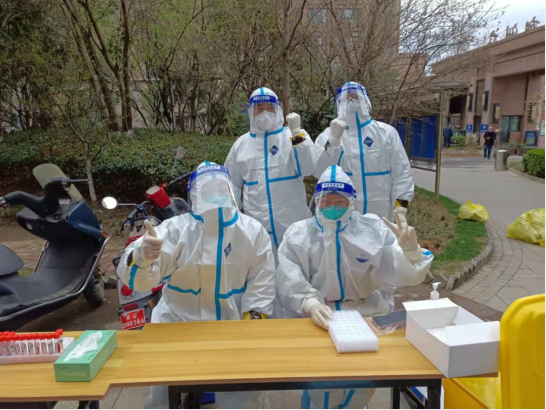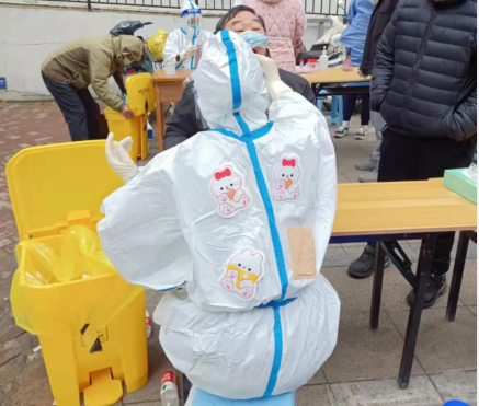 ? ? 12日? 7點(diǎn)集合,領(lǐng)裝備,鑒于昨天的教訓(xùn),早上沒(méi)喝水,吃了兩口飯,要不大白服就浪費(fèi)了。出了點(diǎn)意外,排小區(qū)把我們小區(qū)給忘了,沒(méi)醫(yī)生來(lái)支援,就三個(gè)醫(yī)生,三個(gè)點(diǎn),三張臺(tái),隊(duì)伍排的那叫一個(gè)長(zhǎng)?!罢?qǐng)大家把健康碼打開(kāi),保持一米距離,戴好口罩!”這是我上午說(shuō)的最多的幾句話(huà)。咱們贛榆的醫(yī)生非常辛苦,累了一上午,下午還要采黃碼,掃樓,向他們致敬!中午剛領(lǐng)盒飯就通知徐州支援的醫(yī)生到了,來(lái)了十幾個(gè),扒拉兩口飯,開(kāi)始穿裝備。第七輪結(jié)束,感覺(jué)人都廢了,渾身濕透,嗓子疼,不想動(dòng)!