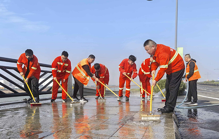 10月18日上午,悅升公司機(jī)關(guān)管理人員深入一線對海濱大道南卡口至疏港大道路段及橋梁路緣石進(jìn)行強(qiáng)化清洗,用實干打好賽道保障“戰(zhàn)役”。工作現(xiàn)場,一臺高壓沖洗車先行對賽道路緣石和橋梁輔道進(jìn)行高壓沖洗,隨后,工作人員一字排開,用毛刷不斷擦洗地面頑固臟污,大家斗志昂揚、步步推進(jìn),做到?jīng)_洗無漏洗、無死角,最后再用灑水車清洗一遍。經(jīng)過近三小時清洗,高標(biāo)準(zhǔn)完成路源石和橋梁輔道保潔清洗工作,有效提高了賽道潔凈度。截至目前,已完成該路段2000多米路緣石清洗工作。
