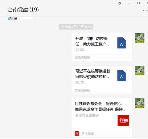 3月13日,臺南供電所黨支部通過微信方式開展“履行防控責任,助力復工復產”主題黨日活動,組織黨員學習了習近平在統(tǒng)籌推進新冠肺炎疫情防控和經濟社會發(fā)展工作部署會議上的講話精神、江蘇省委常委會會議暨省委財經委員會第四次會議精神。全體黨員結合自身工作,就履行職責、助力復工復產工作交流自己的想法和做法。