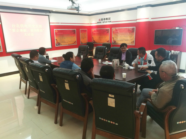 臺北供電所黨支部在5月25日召開“愛企奉獻、愛崗敬業(yè)”主題討論會,結(jié)合經(jīng)理助理徐磊、集團勞模于廣兵等優(yōu)秀黨員親身講解先進事跡,廣泛征求生產(chǎn)經(jīng)營、改革發(fā)展的好辦法、好建議,組織黨員干部直面問題、凝聚共識,為企業(yè)健康發(fā)展建言獻策。(錢明華)