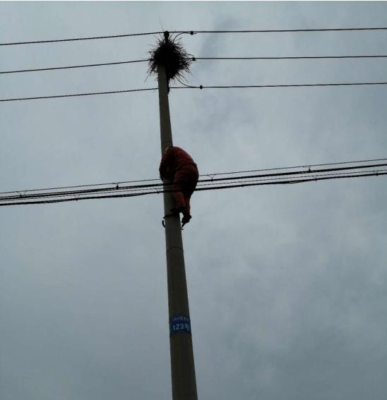2月24日,該所值班人員進(jìn)行巡線排查工作。按照預(yù)案,值班人員在做好個人防護(hù)的同時,分時間分批次巡線排查,每發(fā)現(xiàn)鳥巢一處,清理一處,確保漏查無死角。截止當(dāng)天,該所共清除鳥巢3處。(邱利益