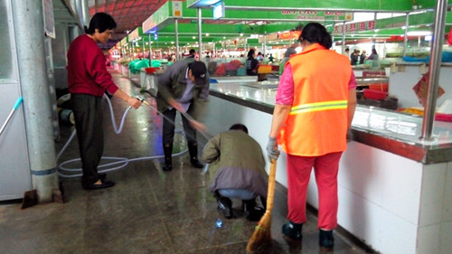 當人們歡度國慶佳節(jié)之時,公司巨龍農貿市場全體職工卻是在創(chuàng)衛(wèi)工作現(xiàn)場度過的。