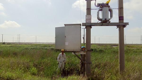 713日中午,供電所接到新灘工區(qū)故障報修電話,該所立即召集人員趕往現(xiàn)場處理故障。通過和用戶溝通,發(fā)現(xiàn)該工區(qū)用電常常發(fā)生短路故障。正中午,溫度上升到28度,工作人員頂著烈日,經(jīng)過兩個多小時的現(xiàn)場排查檢測,終于將問題聚焦到線路的中項,順著中項一直排查到灘頭的一臺水泵,發(fā)現(xiàn)是因為水泵絕緣不夠引起的短路。工作人員采取措施隔離了水泵后,該工區(qū)順利的送上了電,也順利的解決故障。(徐圩供電所)