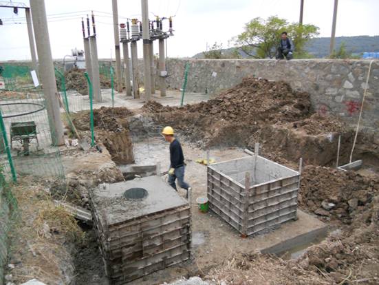 圖為管港變電所內(nèi)設(shè)備基礎(chǔ)施工場景