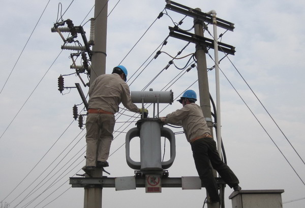 圖為該所職工在黃下線養(yǎng)殖場公變進(jìn)行檢修 近期,青口供電所在公司抽調(diào)精兵強(qiáng)將以決戰(zhàn)利海110KV變電站工程、所里人力十分緊張的情況下,合理進(jìn)行人力調(diào)配,組織職工加班加點,對供電設(shè)備全面進(jìn)行檢修,確保秋冬季節(jié)設(shè)備安全供電。(宋中文)