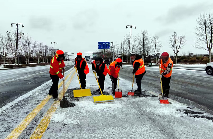? ? ? ?連日來,受強冷空氣影響,鵝毛雪花持續(xù)飄落港城大地。為保障行人車輛往來徐圩新城安全通行。保潔分公司全員上下協(xié)力同心、遇雪”奮戰(zhàn),確保責任區(qū)域道路車輛行人安全出行。