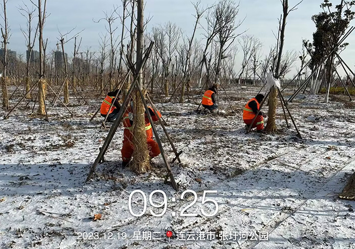 為確保園林樹(shù)木安全越冬,有效鞏固園林綠化成果,自11月中旬起,綠化分公司按照早動(dòng)員、早部署、早實(shí)施的原則,在管養(yǎng)區(qū)域開(kāi)展了冬季綠地管護(hù)提質(zhì)專項(xiàng)活動(dòng),通過(guò)澆灌凍水、樹(shù)木修剪、根頸培土、包裹樹(shù)干等多項(xiàng)舉措有力保證了苗木安全過(guò)冬。