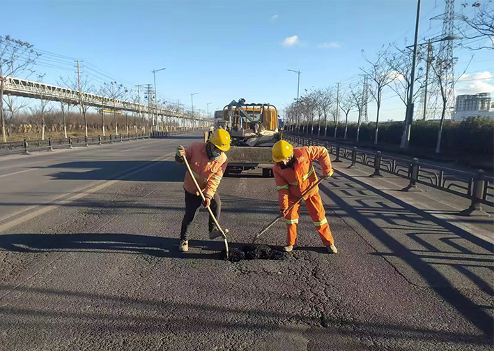 受近期冬季雨雪冰凍天氣影響,徐圩新區(qū)部分道路出現(xiàn)瀝青路面破損、龜裂等現(xiàn)象嚴重,坑洼的路面不僅影響道路通行安全,也影響了城區(qū)形象。為防止路面坑槽及延伸病害的快速發(fā)展,近日,市政分公司及時組織兩班人馬,10名道路養(yǎng)護人員,加班加點對新區(qū)破損瀝青路面進行全面修補。
