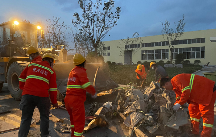 面對(duì)繁重工作量,為了切實(shí)加快施工進(jìn)度,悅升公司黨員干部主動(dòng)請(qǐng)纓要求到一線與大家共同奮戰(zhàn)。“不要急,要嚴(yán)格施工流程,確保工程質(zhì)量達(dá)標(biāo)……”該公司負(fù)責(zé)人馮如師邊說(shuō)邊邊將工程垃圾裝運(yùn)到車(chē)上。截止當(dāng)前,該公司班子成員帶領(lǐng)機(jī)關(guān)工作人員堅(jiān)守陣地,持續(xù)工作了17日。為確保高質(zhì)高效完成各項(xiàng)工程任務(wù),大家“白加黑”晝夜不間斷的全力奮戰(zhàn),已完成瀝青路面攤鋪1.7萬(wàn)m2、園路鋪設(shè)3000m2、路緣石安裝1660m、樹(shù)池圍牙砌筑1136m、更換下水道篦子130塊……各項(xiàng)工程任務(wù)完成接近尾聲。